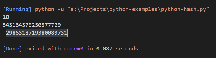 print (hash(num)) print (hash(deci)) print (hash(str1))