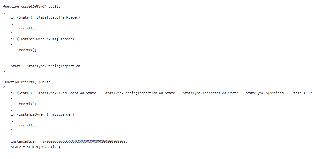 The offer is made here. Now take a look at the AcceptOffer and Reject function below.